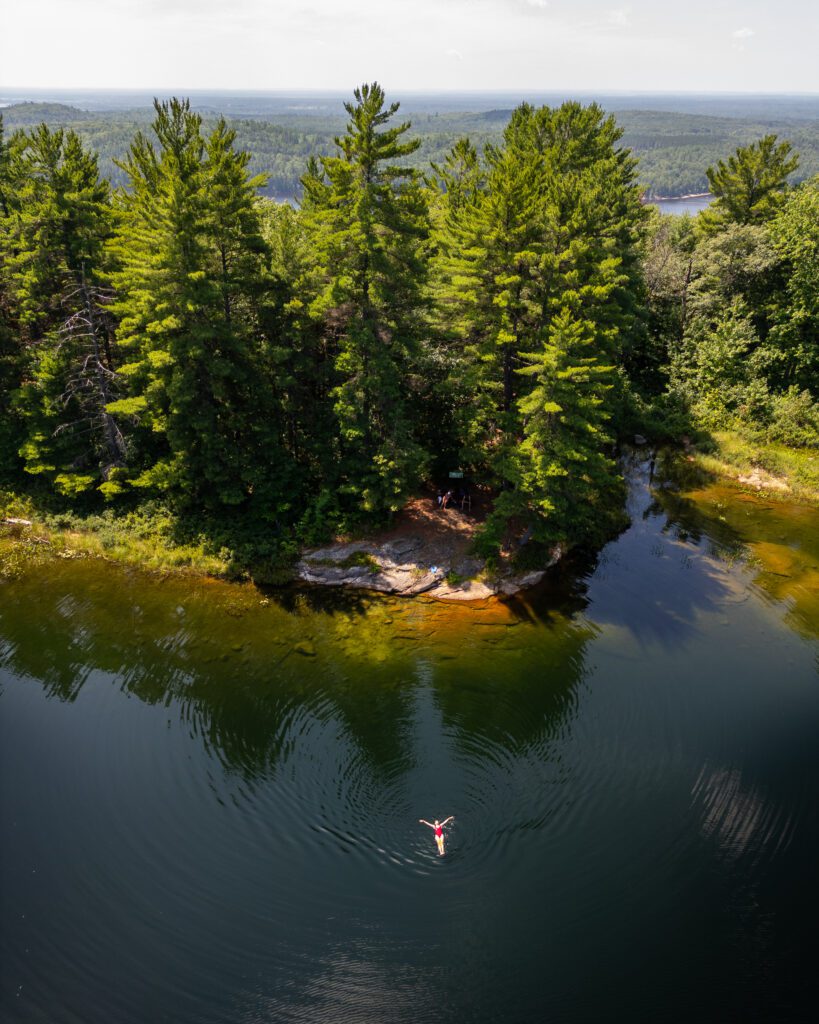 The Thirty-One-Mile Lake is a large lake sprinkled with islands. One of the islands even has its own lake on it! It’s the perfect playground for campers, canoe-campers and glampers alike. And once on the lake, you can practice a bunch of water sports, from canoeing, kayaking, paddleboarding and more. The options are endless!
